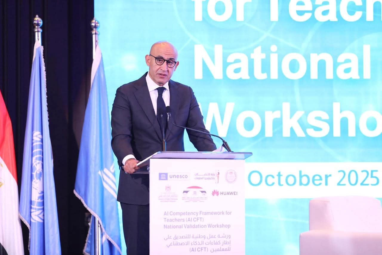 شهد محمد عبد اللطيف وزير التربية والتعليم والتعليم الفنى، والدكتور عمرو طلعت وزير الاتصالات وتكنولوجيا المعلومات ورشة العمل الوطنية للتصديق على إطار كفاءات الذكاء الاصطناعي للمعلمين (AI CFT) التي تنظمها وزارة التربية والتعليم والتعليم الفني بالتعاون مع المكتب الإقليمي لليونسكو بالقاهرة؛ لإعداد المعلمين وتطويرهم ودعم استخدام أدوات الذكاء الاصطناعي في التعليم.