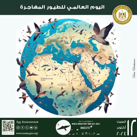 تشارك وزارة البيئة دول العالم الإحتفال باليوم العالمي للطيور المهاجرة الذى يسلط الضوء هذا العام على العلاقة بين الطيور والحشرات في حفظ توازن النظام البيئى ، لما للحشرات من أهمية كبيرة للطيور المهاجرة، ويلفت الإحتفال الانظار إلى المخاوف المتعلقة بانخفاض أعداد الحشرات، حيث تعتبر الحشرات مصادر أساسية للطاقة للعديد من أنواع الطيور المهاجرة، ليس فقط خلال مواسم التكاثر ولكن أيضًا خلال رحلاتها الواسعة، وتؤثر بشكل كبير على توقيت هجرة الطيور ومدتها ونجاحها بشكل عام، ويتم الاحتفال باليوم العالمي للطيور المهاجرة كل عام مرتين فى يومى 11 مايو و 12 أكتوبر ، بما يتماشى مع الطبيعة الدورية لهجرة الطيور في نصفي الكرة الأرضية المختلفة.