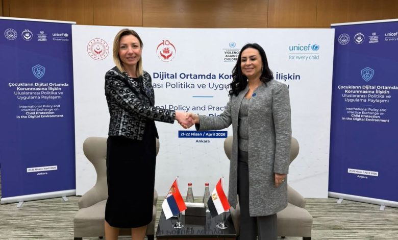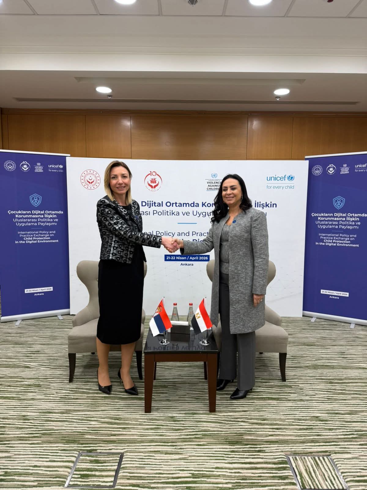 التقت الدكتورة مايا مرسي وزيرة التضامن الاجتماعي، تانجانا ماكورا وزيرة المساواة بين الجنسين والوقاية من العنف ضد النساء والتمكين الاقتصادي والسياسي للنساء بجمهورية صربيا، وذلك على هامش مشاركتها في اجتماع المائدة المستديرة حول “تبادل السياسات والممارسات الدولية بشأن حماية الطفل في البيئة الرقمية” بأنقرة، بحضور الأستاذة دينا الصيرفي مساعدة وزيرة التضامن الاجتماعي للتعاون الدولي والعلاقات والاتفاقات الدولية.