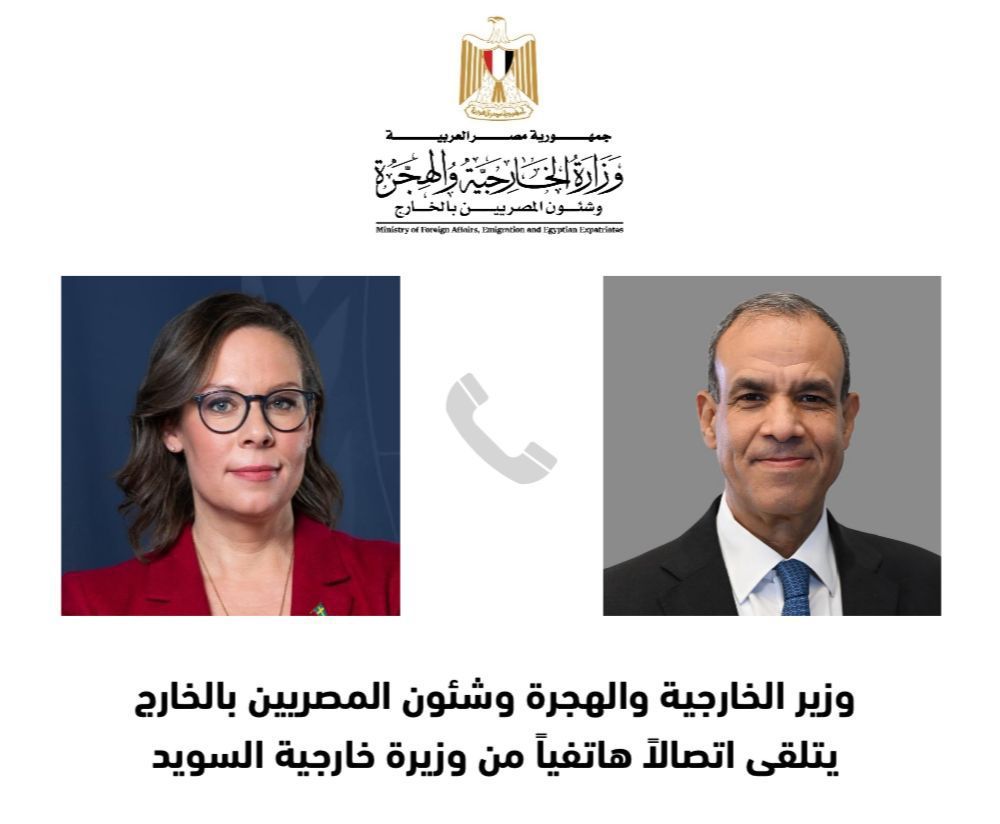 تلقى د. بدر عبد العاطى، وزير الخارجية والهجرة، اليوم الاثنين، اتصالاً هاتفياً من ماريا مالمر ستينرجارد وزيرة خارجية السويد، تم خلاله مناقشة مُجمل العلاقات الثنائية، وكذلك التطورات فى الشرق الأوسط في ظل التصعيد المتسارع بالمنطقة.