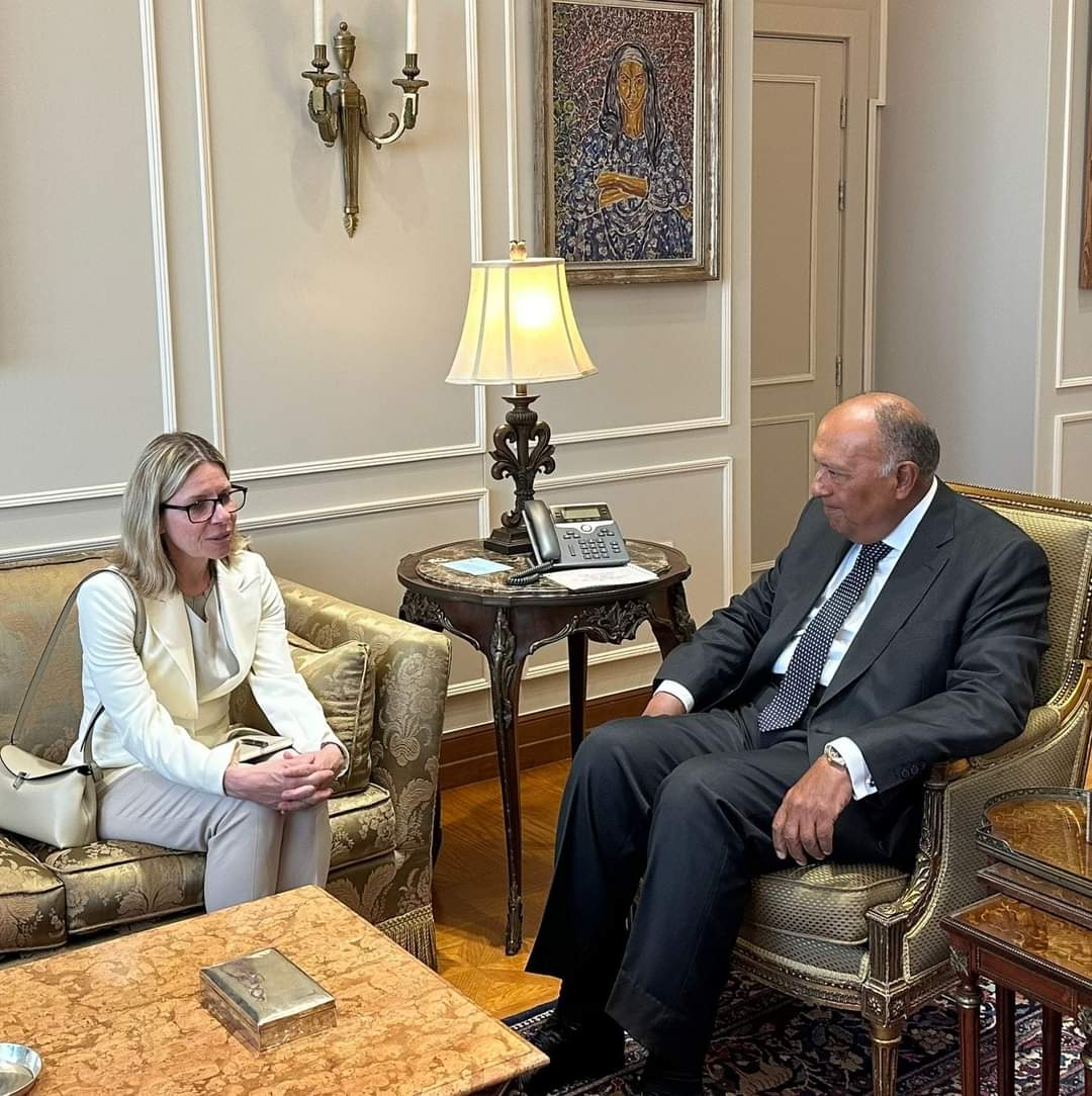 استقبل سامح شكري وزير الخارجية، اليوم الاثنين، انا بيردي، المدير العام للعمليات بالبنك الدولي، وذلك خلال زيارتها الحالية إلى مصر لبحث تعزيز التعاون بين مصر والبنك الدولي.