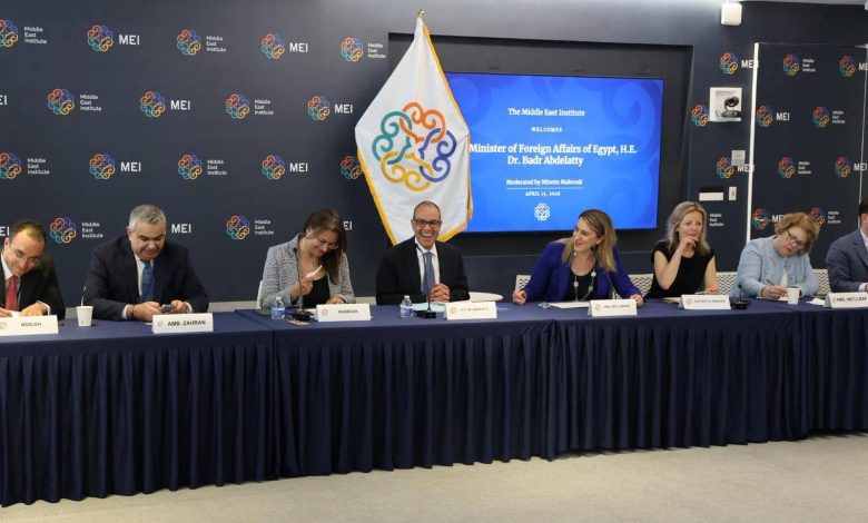 شارك د. بدر عبد العاطي وزير الخارجية والتعاون الدولي والمصريين بالخارج في مائدة مستديرة نظمها “معهد الشرق الأوسط” Middle East Institute بعنوان “الدبلوماسية المصرية في مواجهة التحديات الإقليمية المتغيرة”، وذلك خلال اليوم الثاني من زيارته إلى واشنطن يوم الأربعاء ١٥ ابريل.