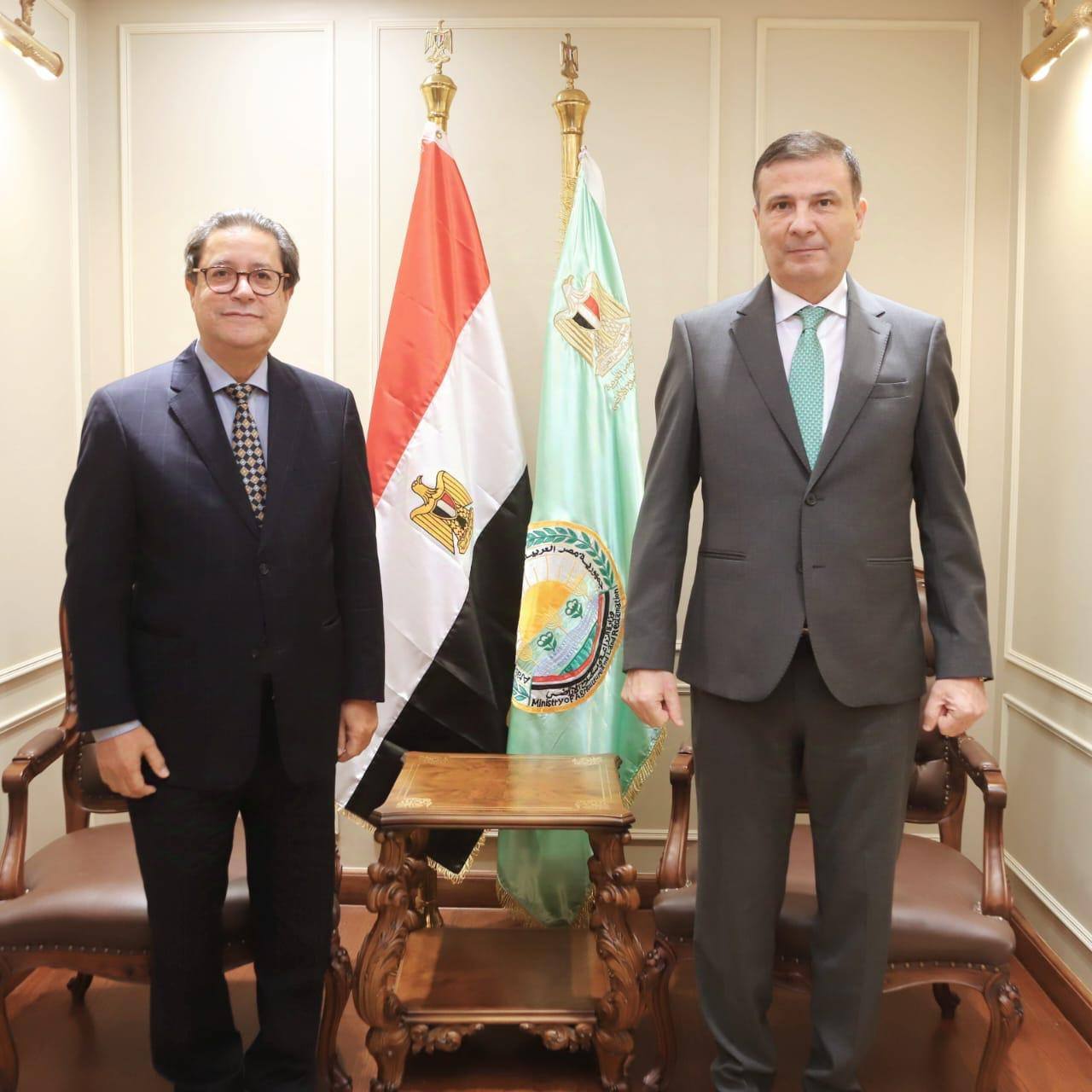 علاء فاروق وزير الزراعة واستصلاح الأراضي استقبل د على أبوسبع مدير المركز الدولى للبحوث والاستشارات الزراعية فى المناطق الجافة (ايكاردا) والوفد المرافق له اللقاء تناول العديد سبل تعزيز التعاون المشترك وايضا دور المجموعة الاستشارية للبحوث الزراعية فى دعم الدول الاعضاء خاصةً مصر ودول شمال افريقيا،