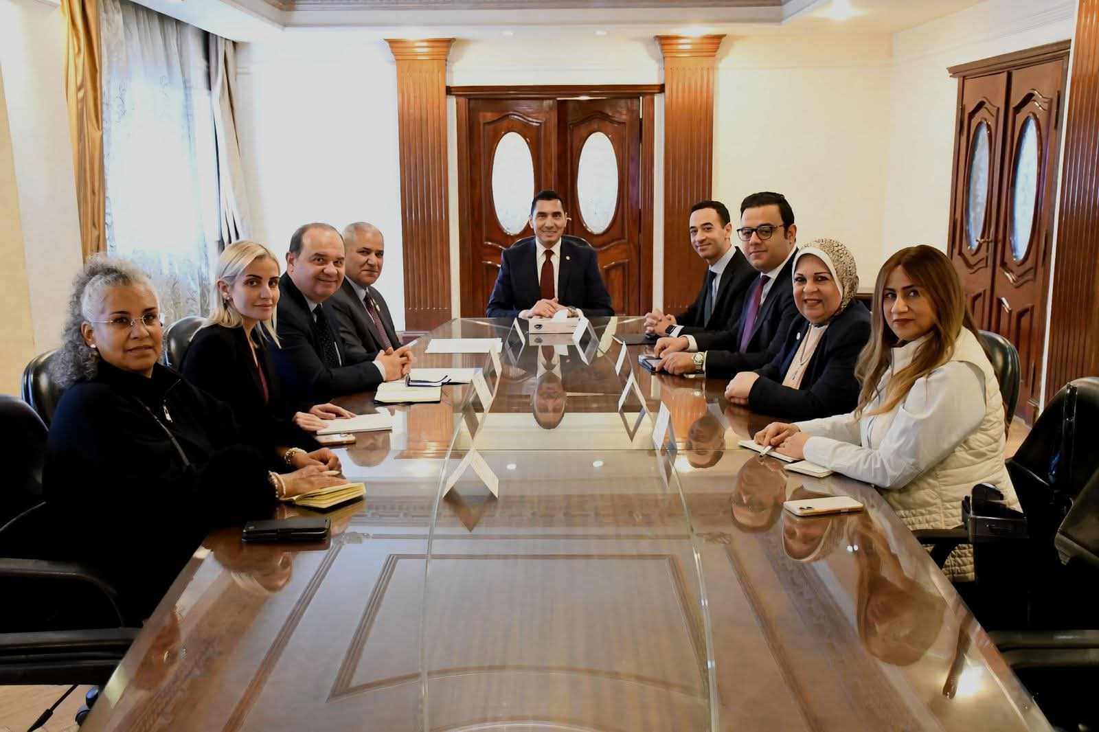 التقي جوهر نبيل، وزير الشباب والرياضة، بالسيد عبد الحكيم الواعر، المدير العام المساعد لمنظمة الأغذية والزراعة (الفاو) والممثل الإقليمي للشرق الأدنى وشمال أفريقيا، لبحث سبل تعزيز التعاون المشترك وتوسيع نطاق المشروعات التنموية الموجهة للشباب في جميع محافظات الجمهورية.