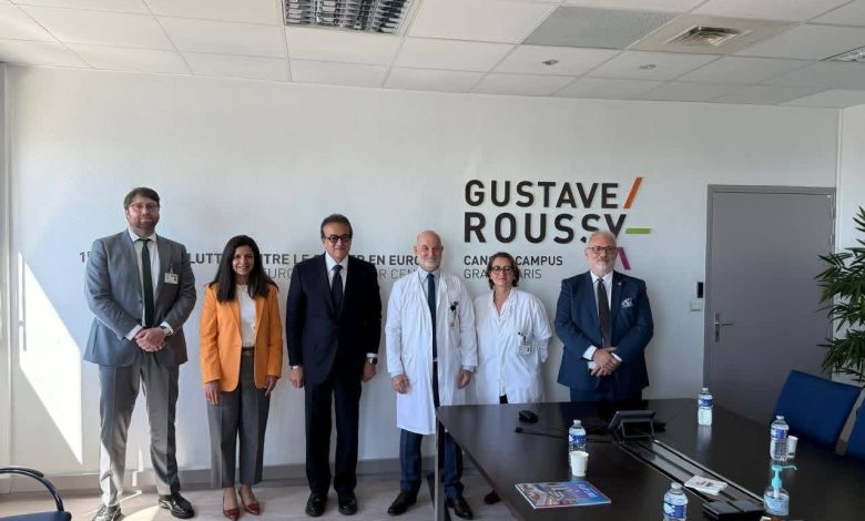 وناقش الجانبان الزيارة المرتقبة للدكتور فابريس بارليزي إلى مستشفى جوستاف روسي–دار السلام (هرمل)، باعتباره أول فرع دولي للمعهد خارج فرنسا، إلى جانب متابعة أحدث بروتوكولات علاج الأورام المطبقة هناك بالتعاون مع المعهد الأم في فرنسا.