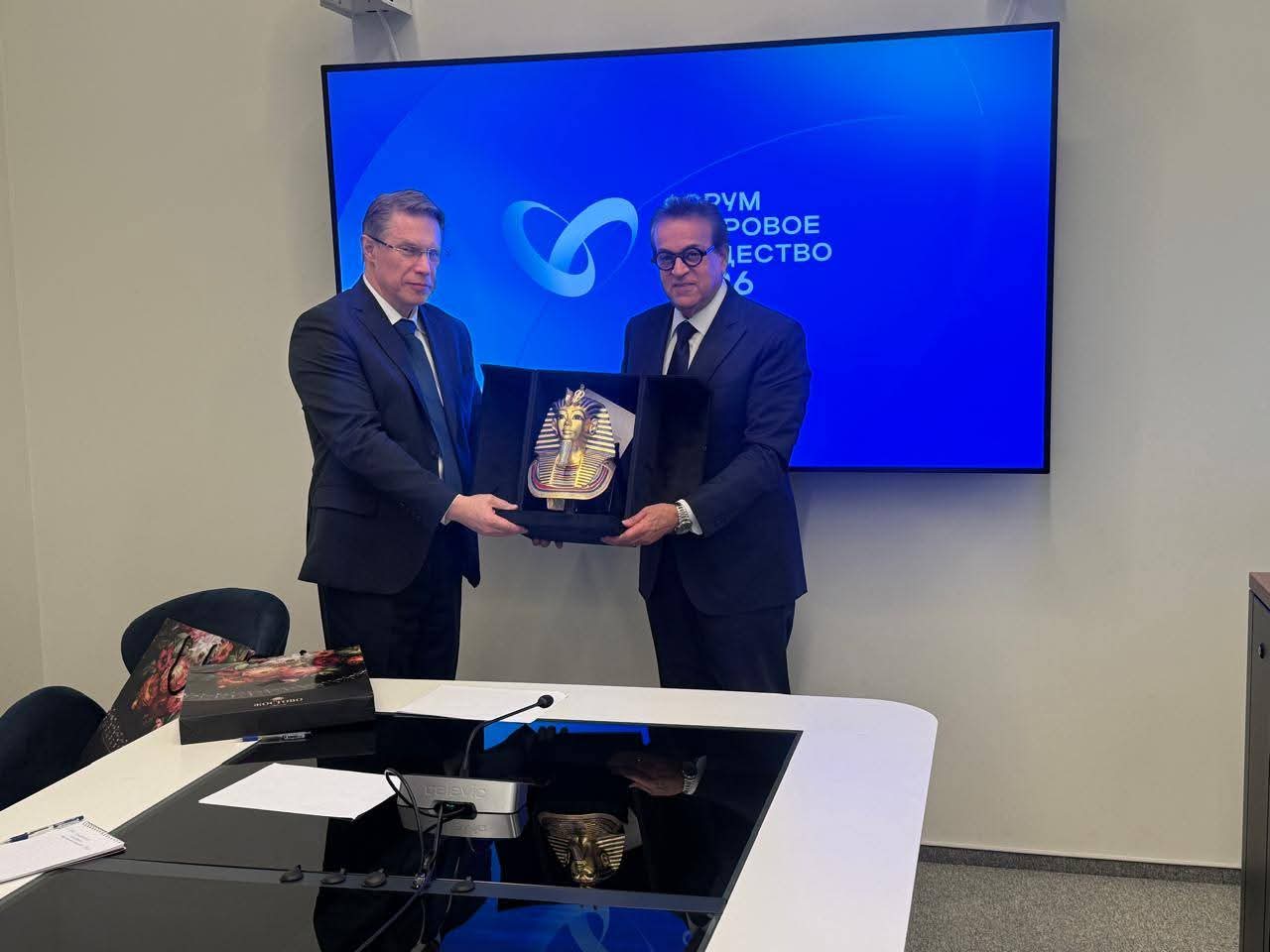التقى الدكتور خالد عبدالغفار وزير الصحة والسكان بالدكتور ميخائيل موراشكو وزير الصحة في روسيا الاتحادية، لبحث عدد من ملفات العمل المشتركة، وذلك على هامش منتدى «الحياة الصحية» الذي عقد في موسكو يومي 16 و17 مارس الجاري، والذي يهدف إلى إطالة سنوات الحياة الصحية وتعزيز الصحة النفسية وتوفير بيئة داعمة لتحسين جودة الحياة.