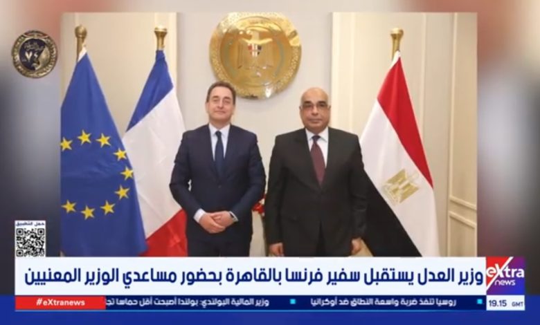 وزير العدل يستقبل سفير فرنسا بالقاهرة بحضور مساعدي الوزير المعنيين