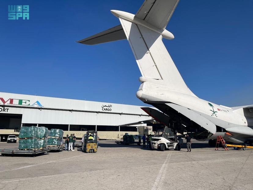 وصلت إلى مطار رفيق الحريري الدولي بالجمهورية اللبنانية الشقيقة، اليوم، الطائرة الإغاثية الحادية عشرة ضمن الجسر الجوي السعودي، الذي يسيّره مركز الملك سلمان للإغاثة والأعمال الإنسانية، وتحمل على متنها المساعدات الإغاثية التي تشتمل على المواد الغذائية والإيوائية والطبية؛ وذلك إنفاذًا لتوجيهات خادم الحرمين الشريفين الملك سلمان بن عبدالعزيز آل سعود، وصاحب السمو الملكي الأمير محمد بن سلمان بن عبدالعزيز آل سعود، ولي العهد رئيس مجلس الوزراء ـ حفظهما الله ـ .