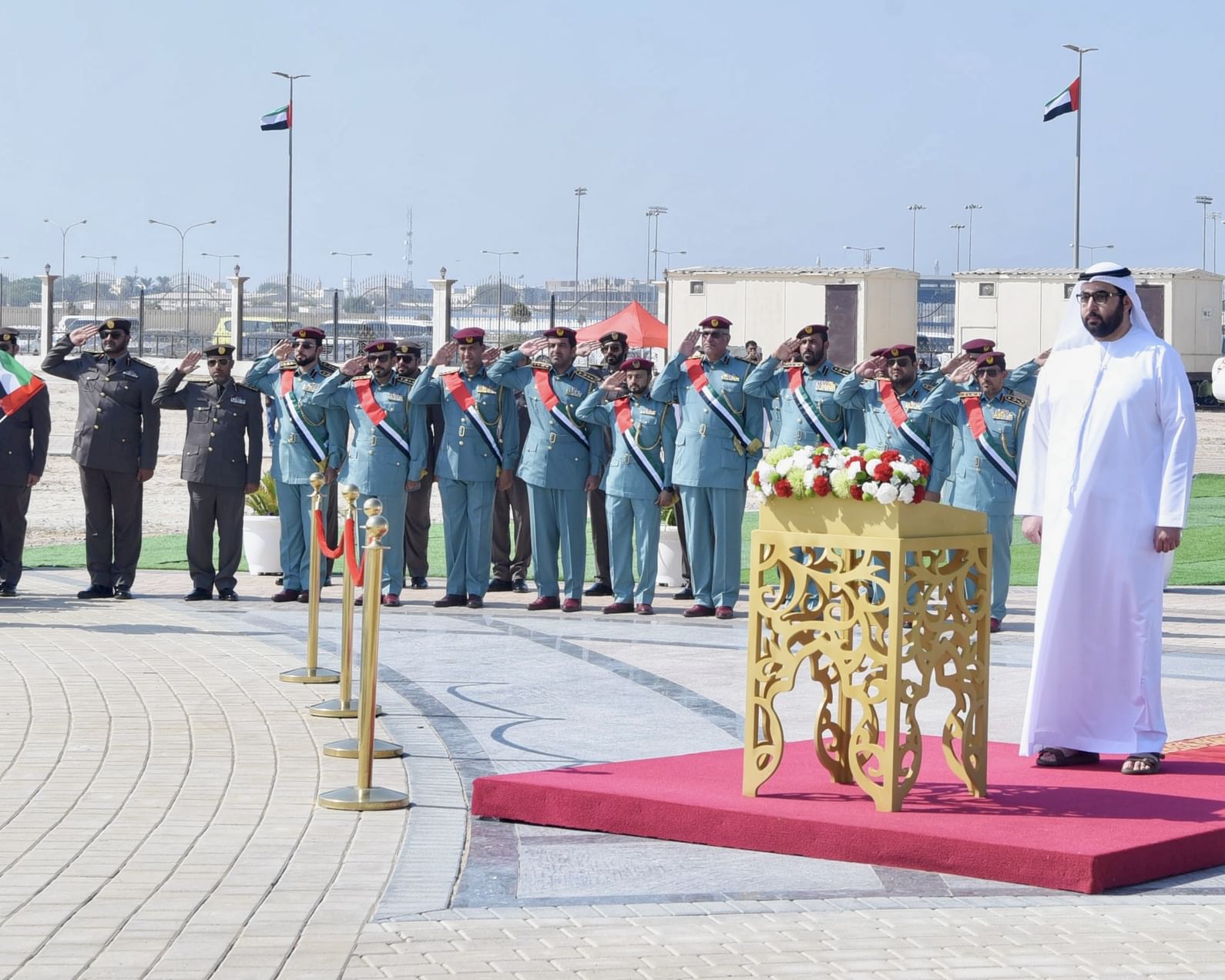 رفع سمو الشيخ راشد بن سعود بن راشد المعلا، ولي عهد أم القيوين، علم الدولة في حديقة الخور في أم القيوين وذلك بمناسبة يوم العلم.