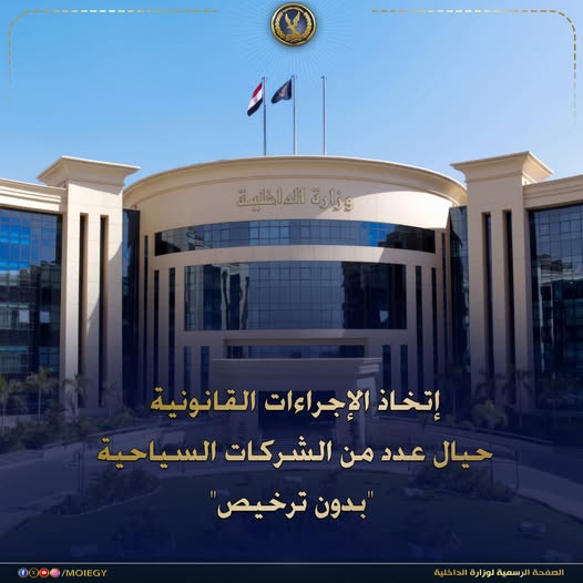 فى إطار جهود أجهزة وزارة الداخلية لمكافحة الجريمة وضبط المخالفات المتعلقة بالأمن السياحى وإحكام الرقابة على الشركات التى تعمل بمجال السياحة “بدون ترخيص” ، تحسباً لقيام القائمين على تلك الشركات بالنصب والإحتيال على المواطنين تحت زعم تنظيم الرحلات المختلفة.. فقد أكدت معلومات وتحريات قطاعى “الأمن العام – شرطة السياحة والآثار” قيام مسئولى (15 شركة سياحية “بدون ترخيص”) كائنة بنطاق عدد من المحافظات بالنصب والإحتيال على المواطنين والإستيلاء على مبالغ مالية منهم بزعم تنظيم برامج سياحية مختلفة لهم وإيهامهم بكونها شركات مرخصة “على خلاف الحقيقة”، والترويج لأنشتطتهم عبر مواقع التواصل الإجتماعى.