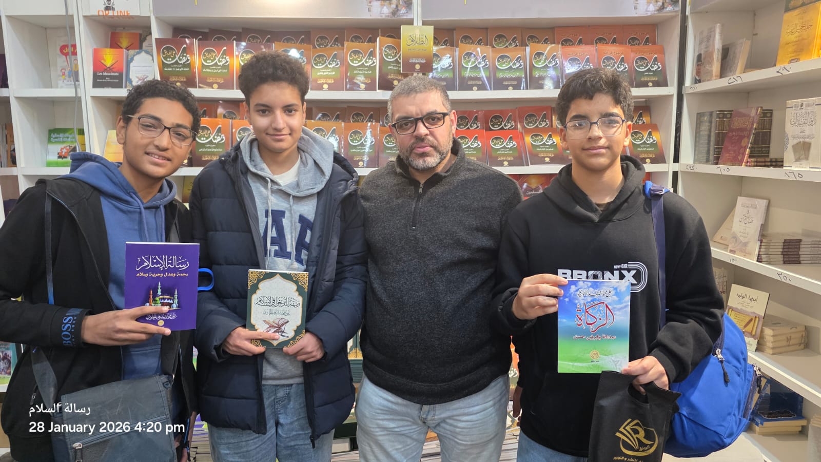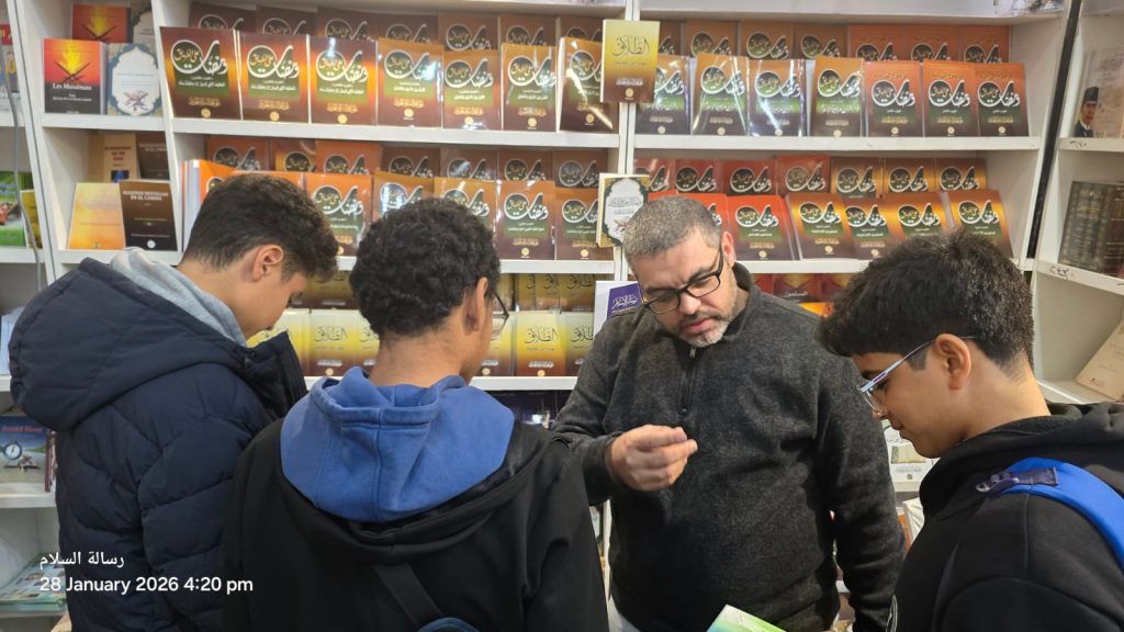 شهد جناح مؤسسة رسالة السلام العالمية داخل معرض الكتاب نقاشات فكرية موسّعة شارك فيها عدد من الشباب ، حول أطروحات المفكر العربي علي محمد الشرفاء الحمادي ورؤيته في تجديد الفكر الديني وبناء وعيٍ إنساني قائم على العقل والقرآن وقيم السلام.