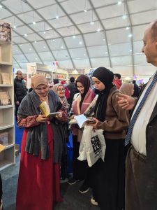 زار اليوم الجمعة وفد من طالبات ومعلمات مدرسة مسجد موسى الثانوية بمدينة أطفيح جناح مؤسسة رسالة السلام ضمن فعاليات معرض القاهرة الدولي للكتاب، في إطار حرص المدرسة على تعزيز الوعي الثقافي والفكري لدى الطالبات.