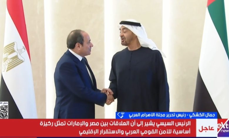 رئيس الدولة والرئيس المصري يبحثان علاقات البلدين والجهود المبذولة تجاه التطورات في المنطقة
