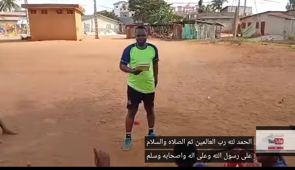 بالذهاب إلى أحد ملاعب كرة القدم فى منطقة كالافى بدولة بنين حيث قام أمام فرق كرة قدم رياضية بشرح مقال المفكر العربي الاستاذ على محمد الشرفاء الحمادي “عودوا إلى الله” حيث قام بشرحه باللغتين العربية ولغة اليوربا وهى إحدى اللغات المحلية المنتشرة في بنين ..