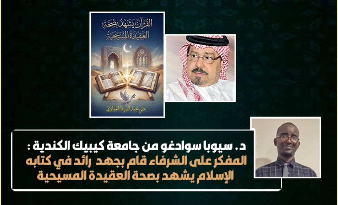 واضاف د. سيوبا سوادغو قائلا : جزى الله الرائد الاستاذ على الشرفاء كل الخير خاصة لعودته إلى القرآن الكريم فالنص القرآنيّ نصّ كريم يعطي الجديد كلما أعدنا قراءة القرآن و بهذا يكون القرآن عظيما بامتياز