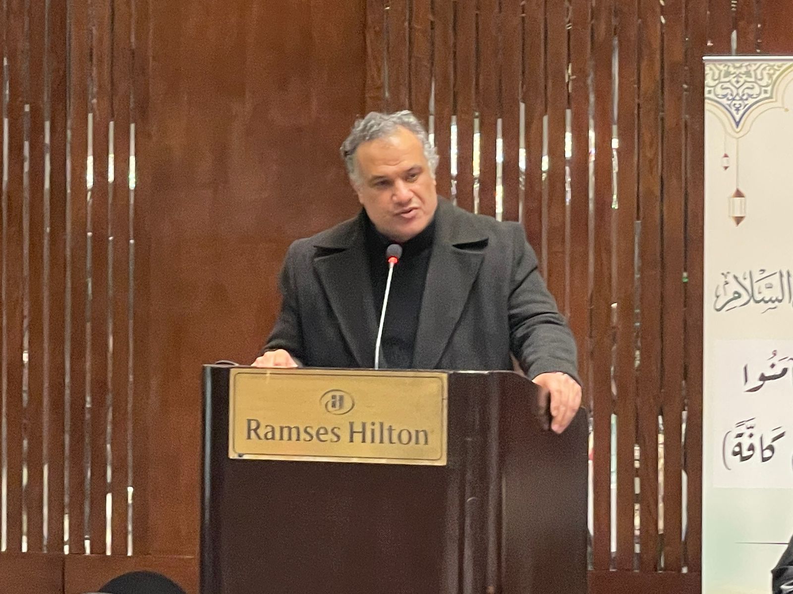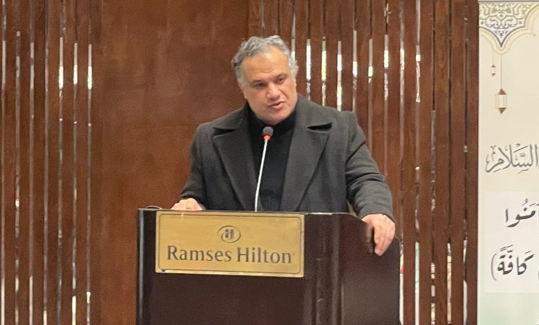 واختتم الكاتب والأديب هشام النجار كلمته بالتأكيد على أن السلم في القرآن تعريف للإسلام ذاته وليس خيارًا سياسيًا، وأن الإيمان أمان وسلام يُشيعه الإنسان في المجتمع لا مجرد شعار عقدي، مستشهدًا بقوله تعالى: (ولا تقولوا لمن ألقى إليكم السلام لست مؤمنًا)، موضحًا أن من ألقى السلام دخل في دائرة السلم والإسلام العملي، حتى في حال الحرب، فكيف بالأوضاع العادية، وأن من اعتدى خرج من دائرة الإيمان العملي السلوكي.