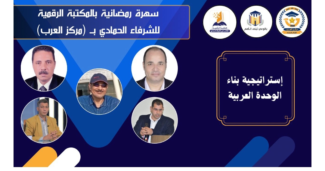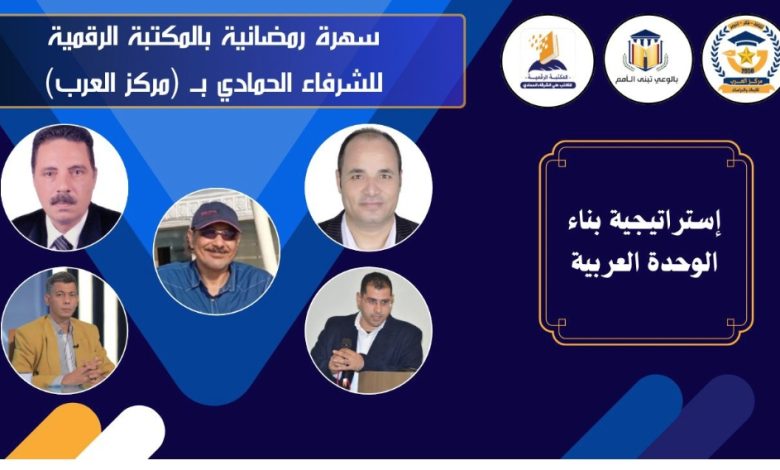 ينظم مركز العرب للأبحاث والدراسات، غداً، ندوة فكرية موسعة تحت عنوان “سهرة رمضانية بالمكتبة الرقمية للشرفاء الحمادي تناقش استراتيجية بناء الوحدة العربية”، وذلك في إطار الأنشطة الثقافية والفكرية التي يعقدها المركز خلال شهر رمضان المبارك لتعزيز الوعي القومي ومناقشة قضايا الأمة.