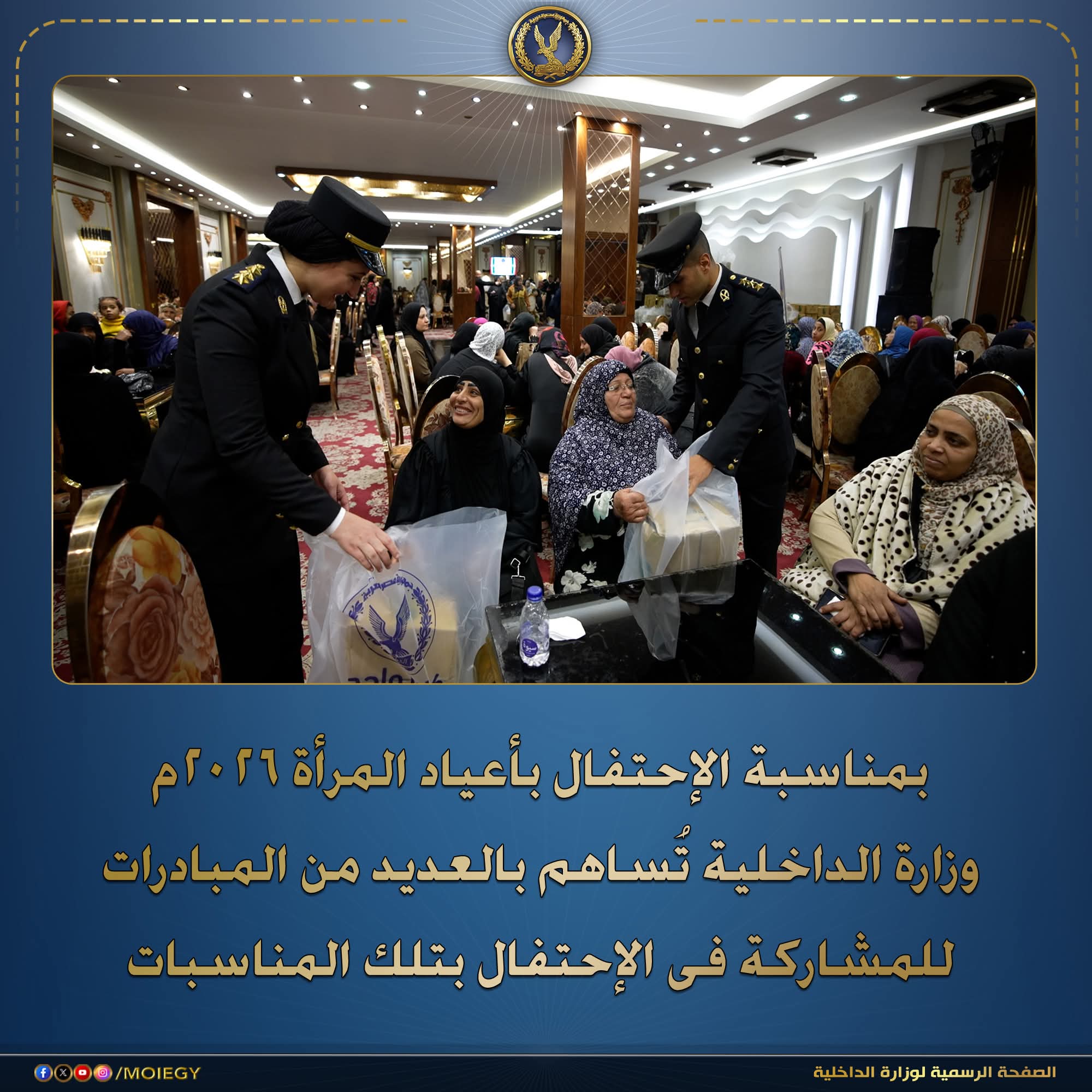إستمراراً للدور المجتمعى لوزارة الداخلية من خلال تبنى وتدعيم المبادرات الإنسانية والمجتمعية ، وتقديراً للدور الهام للمرأة المصرية وفى ضوء الإحتفال بأعياد المرأة خلال شهر مارس 2026 “اليوم العالمى للمرأة – يوم المرأة المصرية – عيد الأم” .. فقد إضطلعت أجهزة وزارة الداخلية بالتنسيق مع الجهات المعنية بتنظيم عدة فعاليات فى إطار تخفيف الأعباء عن كاهلهن فى ظل الظروف الإقتصادية الحالية على النحو التالى :