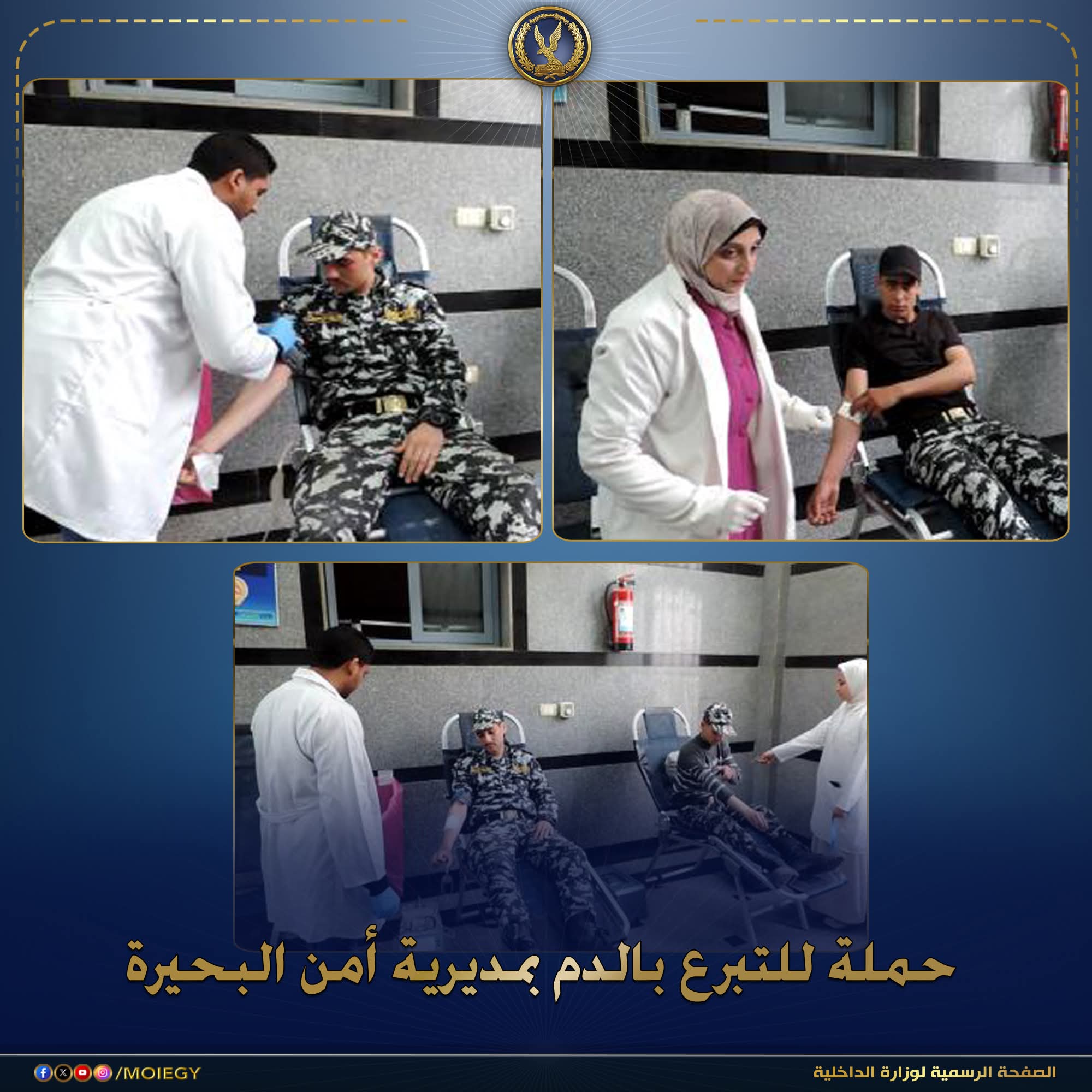 إستمراراً للدور المجتمعى لأجهزة وزارة الداخلية من خلال تفعيل المبادرات الإنسانية.. فقد قامت مديرية أمن البحيرة بالتنسيق مع قطاع الخدمات الطبية بوزارة الداخلية بتنظيم حملة للتبرع بالدم، شارك فيها عدد من رجال الشرطة من قوة المديرية.