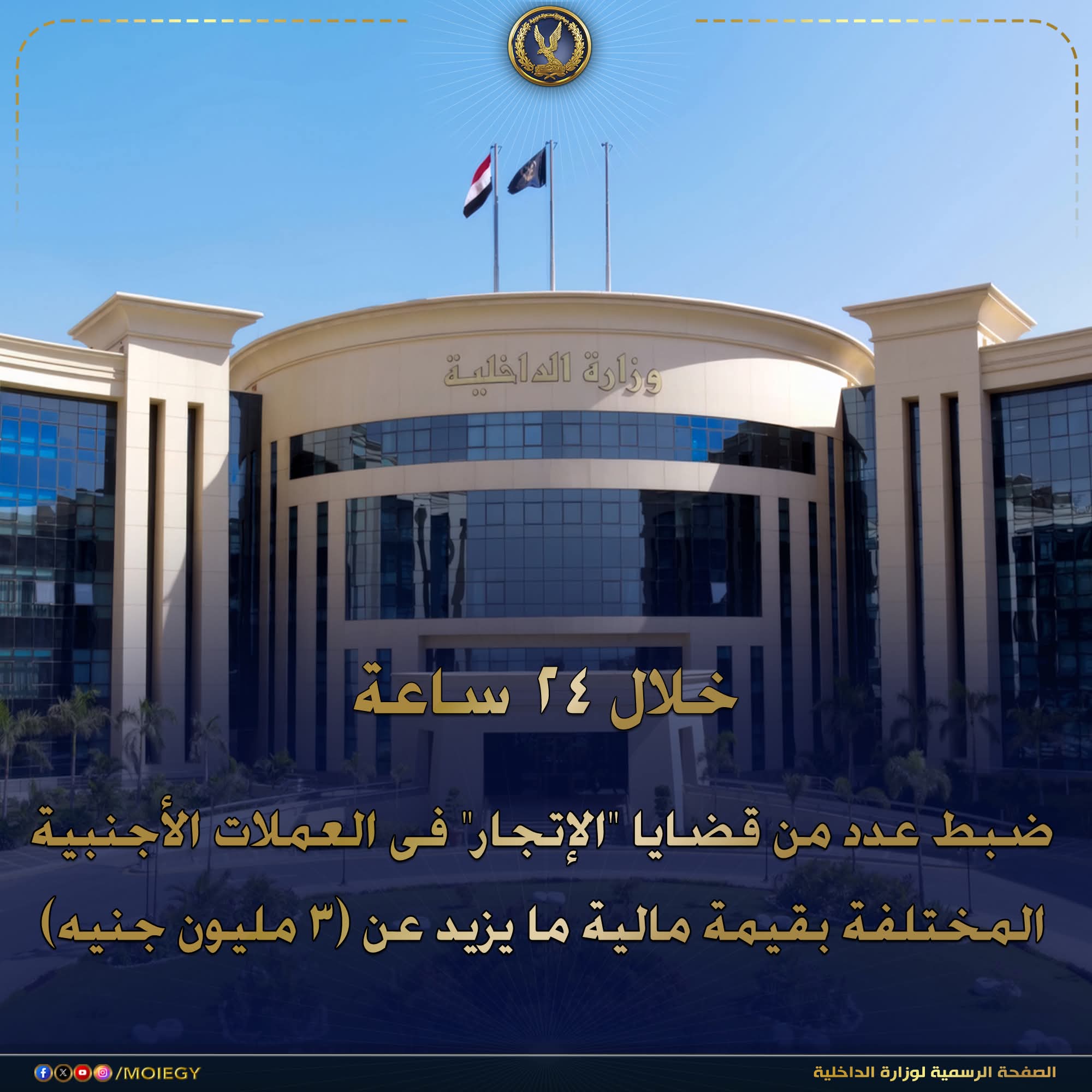 استمرارا لـ الضربات الأمنية لجرائم الإتجار غير المشروع بالنقد الأجنبى والمضاربة بأسعار العملات عن طريق إخفائها عن التداول والإتجار بها خارج نطاق السوق المصرفى ، وما تؤدى إليه من تداعيات سلبية على الإقتصاد القومى للبلاد..