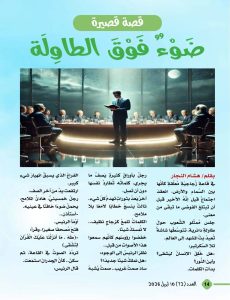 وتضمنت فقرة قصة قصيرة قصة قصيرة جديدة بقلم رئيس مجلس تحرير المجلة الكاتب الصحفي والأديب هشام النجار بعنوان (ضوء فوق الطاولة)