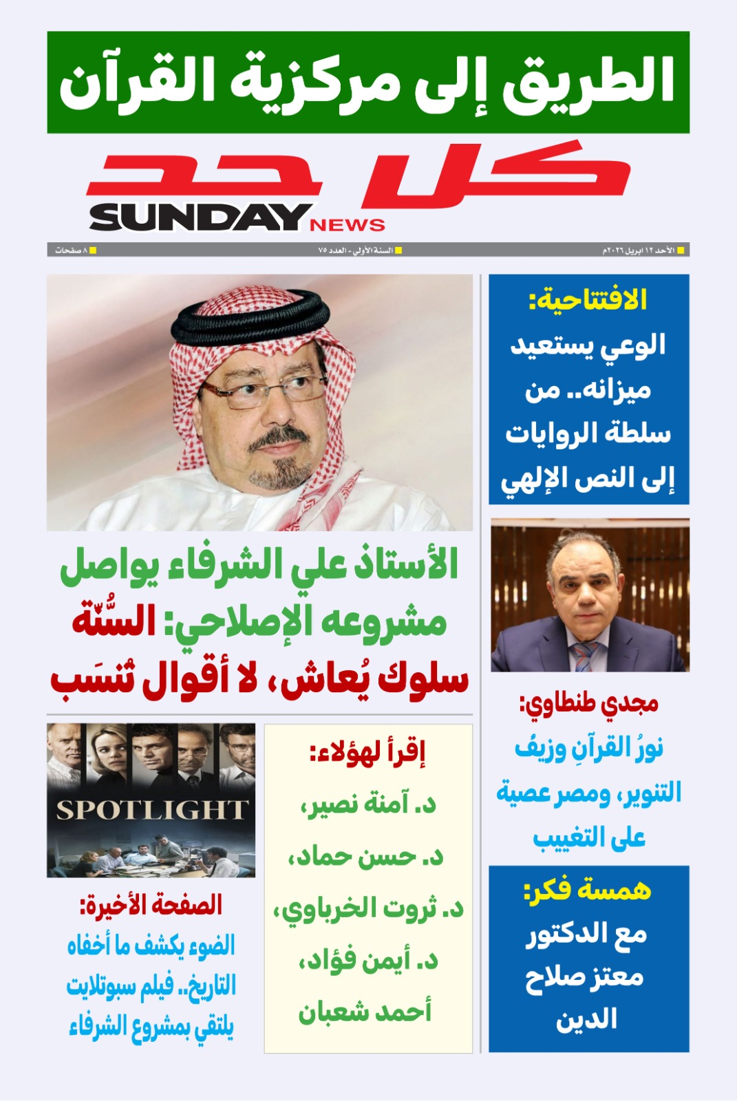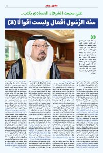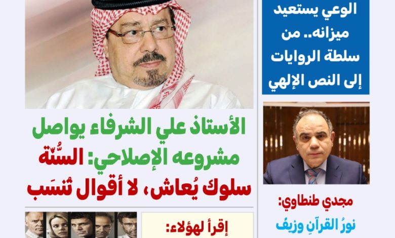 تصدر العدد مقال الكاتب والمفكر العربي الكبير الأستاذ علي محمد الشرفاء الحمادي بعنوان (سنة الرسول أفعال وليست أقوالا ٣)