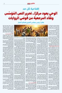 داخل ملف العدد وبالافتتاحية مقال تحليلي لرئيس مجلس تحرير المجلة حول (إستعادة الوعي لميزان.. من سلطة الروايات إلى النص الإلهي