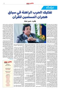 وبالعدد دراسة كتبها المفكر والأكاديمي د. حسن حماد حول تفكيك الحرب الراهنة في سياق هجران المسلمين للقرآن)