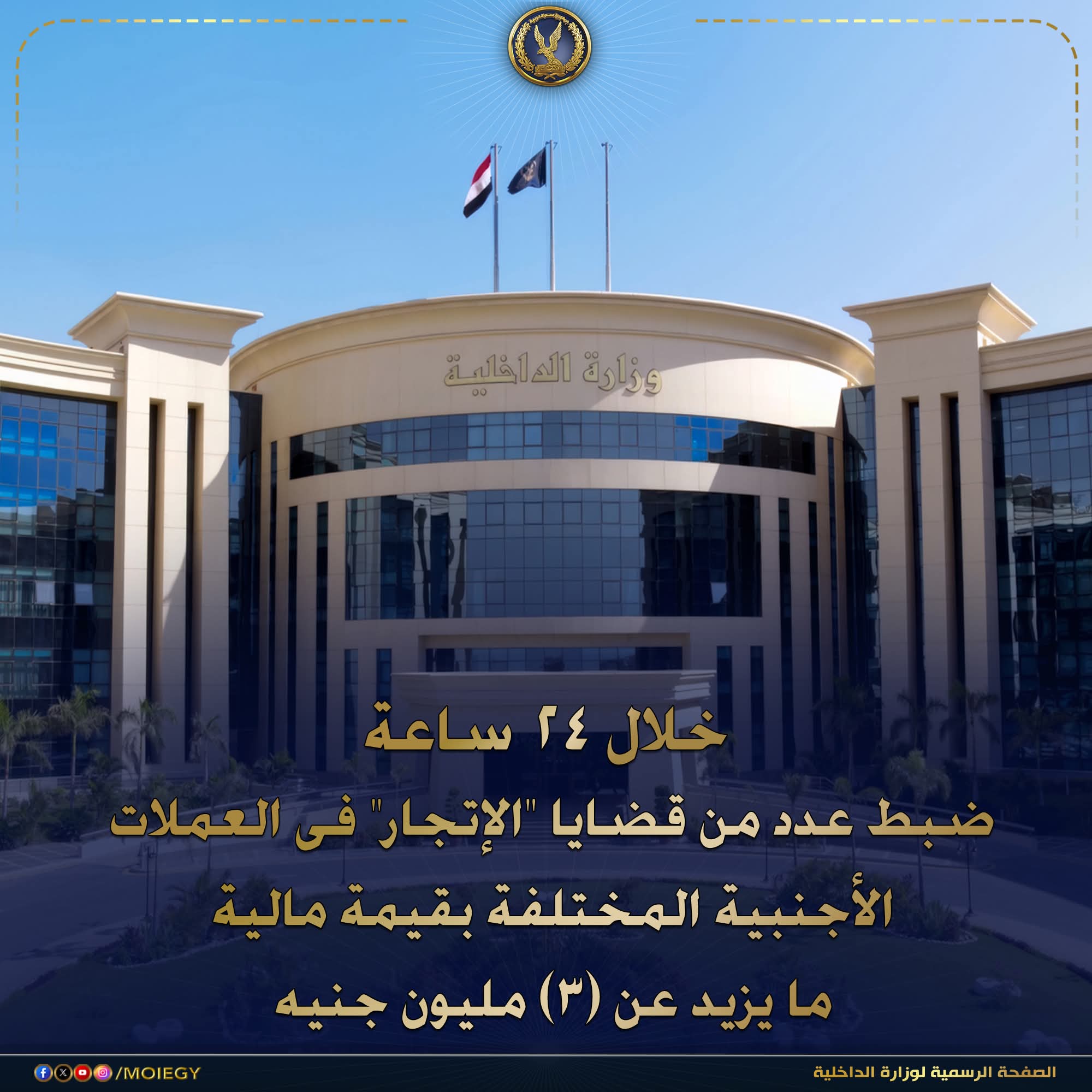 فقد أسفرت جهود قطاع الأمن العام بالإشتراك مع الإدارة العامة لمكافحة جرائم الأموال العامة ومديريات الأمن خلال 24 ساعة عن ضبط عدد من قضايا “الإتجار” فى العملات الأجنبية المختلفة بقيمة مالية ما يزيد عن (3 مليون جنيه).