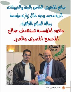 -صانع المحتوى الخاص بالبيئة والحيوانات البرية محمد وجيه خلال زيارته مؤسسة رسالة السلام بالقاهرة:جهود المؤسسة تستهدف صالح المجتمع المصرى والعربى