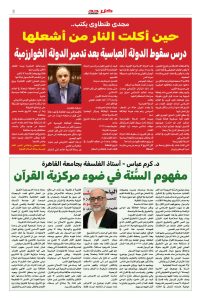 تصدر العدد مقال الكاتب والمفكر العربي الكبير الأستاذ علي محمد الشرفاء الحمادي بعنوان (سنة الرسول أفعال وليست أقوالا ٤)