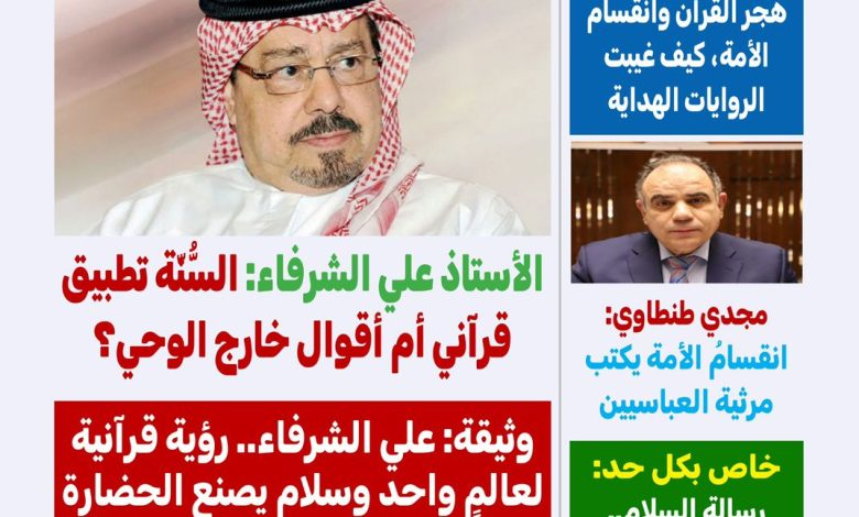 داخل ملف العدد وبالافتتاحية مقال تحليلي لرئيس مجلس تحرير المجلة حول هجر القرآن وانقسام الأمة وكيف غيبت الروايات الهداية