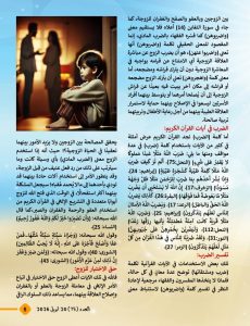 وجاءت افتتاحية العدد لتفتح نقاشًا مباشرًا حول مفهومي «القوامة» و«واضربوهن»، من خلال قراءة تربط بين النصوص المنظمة للخلاف الزوجي وبين الآيات التي تؤكد الصلح والعفو والصفح، على أساس أن أي تفسير ينتج العنف داخل البيت لا ينسجم مع البنية الأخلاقية العامة للخطاب القرآني ولا مع مقصد الاستقرار الأسري.