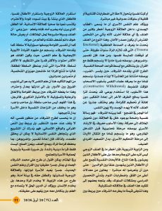 تضمن العدد ملفا رئيسيا يناقش رؤية المفكر العربي علي محمد الشرفاء الحمادي حول العلاقة الزوجية بوصفها علاقة تقوم على السكن والمودة والرحمة، باعتبارها الإطار المقاصدي الحاكم لفهم آيات الأسرة في القرآن الكريم.