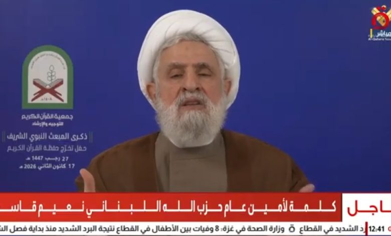 أمين عام حزب الله اللبناني نعيم قاسم: حصرية السلاح بيد الدولة شأن لبناني وإسرائيل لم تلتزم بوقف إطلاق النار أمين عام حزب الله اللبناني، نعيم قاسم، يؤكد أن حصرية السلاح بيد الدولة اللبنانية فقط، منتقدا إسرائيل لعدم التزامها ببنود اتفاق وقف إطلاق النار.