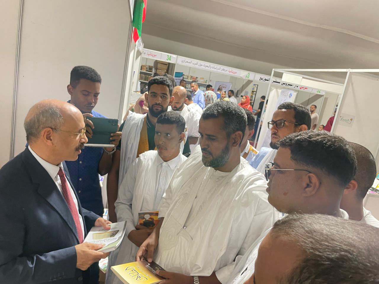 شهد جناح مؤسسة رسالة السلام بمعرض نواكشوط الدولي للكتاب زيارة رسمية لوفد طلاب مجلس العلوم الشرعية الشنقيطية التقليدية برئاسة الدكتور سيد أحمد سيدي الخليل “ أبو سهلة ” .