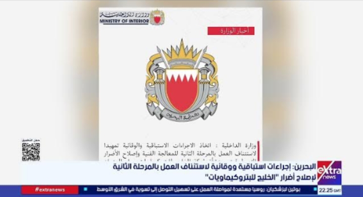 البحرين: إجراءات استباقية ووقائية لاستئناف العمل بالمرحلة الثانية لإصلاح أضرار “الخليج للبتروكيماويات”