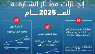 أعلنت هيئة مطار الشارقة الدولي عن تحقيق نتائج قياسية خلال العام الماضي 2025، باستقبال المطار 19.48 مليون مسافر مقارنة بـ…
