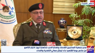 مدير جمعية المحاربين القدماء وضحايا الحرب لإكسترا نيوز: اختيار التاسع من مارس يوما للشهيد جاء ليمثل معاني التضحية والفداء