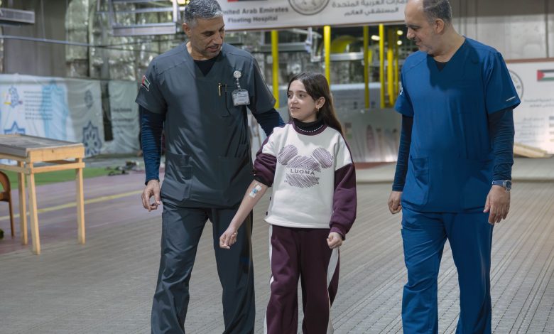 يقدّم المستشفى الإماراتي العائم في ميناء العريش الرعاية الطبية المتخصصة للطفلة الفلسطينية سما محمد إبراهيم الغريز “13 عاماً “، القادمة من قطاع غزة، وذلك ضمن عملية “الفارس الشهم 3″، وفي إطار الجهود الإنسانية والطبية المتواصلة لدولة الإمارات العربية المتحدة لدعم المرضى والمصابين من الأشقاء الفلسطينيين.
