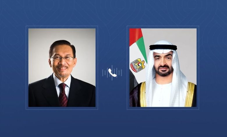 تلقى صاحب السمو الشيخ محمد بن زايد آل نهيان، رئيس الدولة، حفظه الله، اتصالاً هاتفياً، اليوم، من معالي أنور إبراهيم، رئيس وزراء ماليزيا، بحثا خلاله التطورات التي تشهدها المنطقة وتداعيات الأعمال العسكرية المتصاعدة على الأمن والاستقرار على المستويين الإقليمي والدولي إلى جانب تأثيراتها على حركة الملاحة الدولية والاقتصاد العالمي.