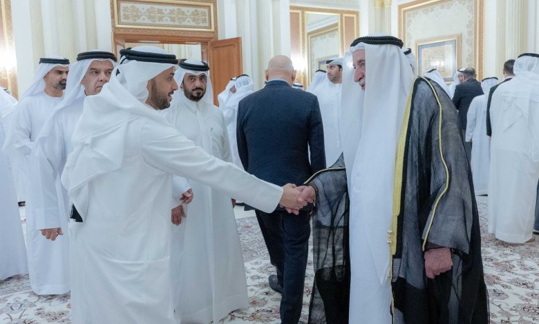 وتلقى سموه التهاني والتبريكات بهذه المناسبة الدينية العظيمة من سعادة الشيخ خالد بن عبدالله بن علي بن حمد آل خليفة سفير مملكة البحرين لدى الدولة، ومعالي سهيل بن محمد فرج فارس المزروعي وزير الطاقة والبنية التحتية، وأعضاء السلطة القضائية، ووفد أئمة وخطباء مساجد الشارقة، وأعيان البلاد والمواطنين.