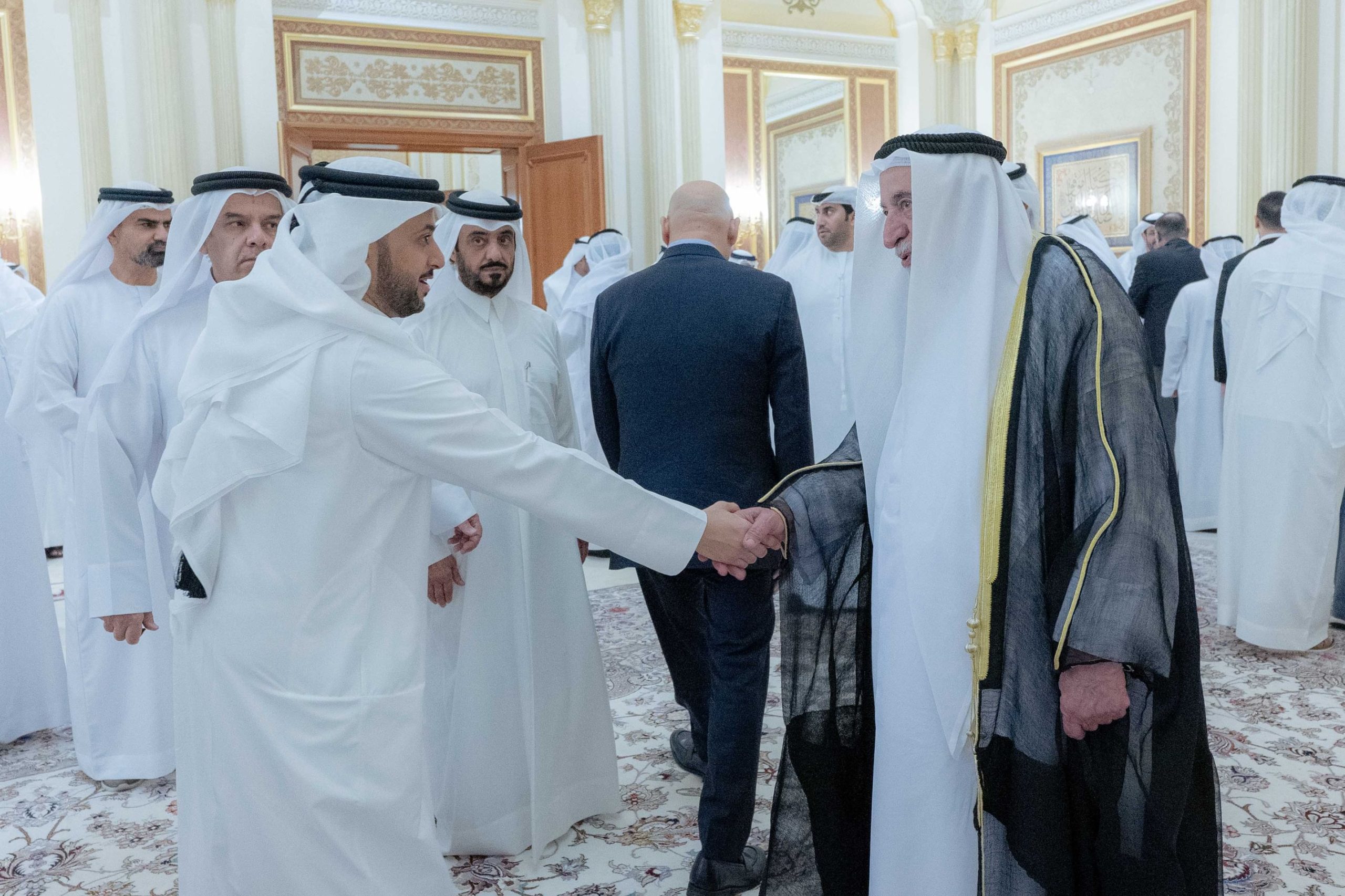 حضر الاستقبال كل من: الشيخ سعود بن خالد بن سلطان القاسمي المستشار بمكتب سمو الحاكم، والشيخ عصام بن صقر القاسمي المستشار بمكتب سمو الحاكم، والشيخ محمد بن سعود القاسمي رئيس دائرة المالية المركزية، والشيخ خالد بن عبدالله القاسمي رئيس هيئة الشارقة للموانئ والجمارك والمناطق الحرة، والشيخ الدكتور سالم بن عبدالرحمن القاسمي رئيس مكتب سمو الحاكم، والشيخ خالد بن عصام القاسمي رئيس دائرة الطيران المدني، والشيخ محمد بن حميد القاسمي رئيس دائرة الإحصاء والتنمية المجتمعية، والشيخ ماجد بن سلطان القاسمي رئيس دائرة شؤون الضواحي، والشيخ خالد بن أحمد بن سلطان القاسمي رئيس دار الوثائق، والشيخ صقر بن محمد القاسمي رئيس مجلس إدارة جمعية الشارقة الخيرية، والشيخ الدكتور خالد بن حميد القاسمي رئيس مجلس الشارقة الرياضي، والشيخ محمد بن أحمد بن سلطان القاسمي نائب رئيس دائرة النفط، والشيخ فيصل بن سعود القاسمي مدير هيئة مطار الشارقة الدولي، والشيخ عبدالله بن محمد القاسمي مدير الهيئة العامة للشؤون الإسلامية والأوقاف بالشارقة، ومعالي عبدالرحمن بن محمد العويس وزير شؤون المجلس الوطني الاتحادي، وسعادة راشد أحمد بن الشيخ رئيس الديوان الأميري، وعدد من الشيوخ وكبار المسؤولين.