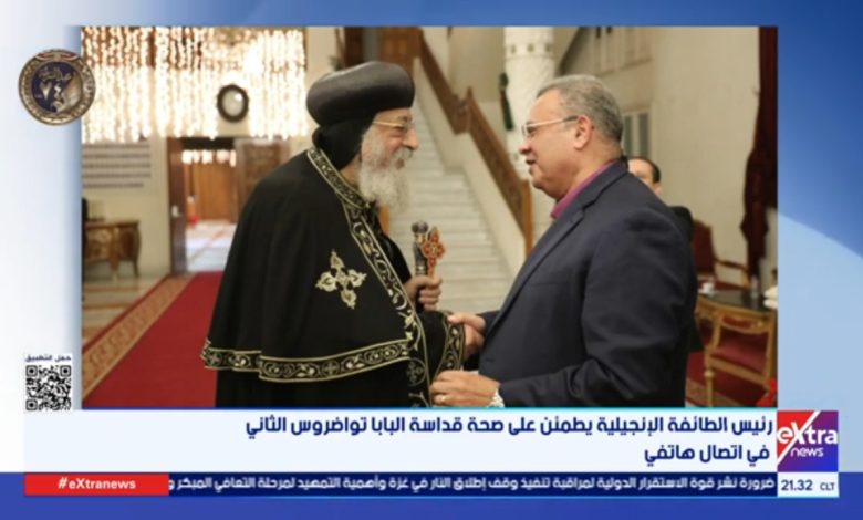 رئيس الطائفة الإنجيلية يطمئن على صحة قداسة البابا تواضروس الثاني في اتصال هاتفي