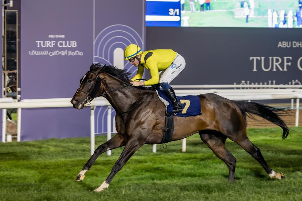 وتألق “لا يطال” لسمو الشيخ أحمد بن راشد آل مكتوم، بإشراف مايكل كوستا، وقيادة راي داوسون، في الشوط السابع والختامي لمسافة 1600 متر، للخيول المهجنة الأصيلة من شمال وجنوب الكرة الأرضية عمر 3 و4 سنوات فما فوق على لقب سباق واحة الصحراء للمبتدئين، وجوائزه 66 ألف درهم.