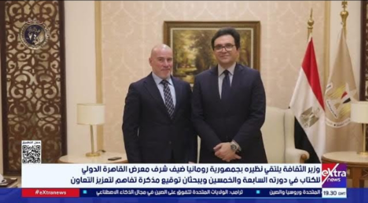 وزير الثقافة يلتقي نظيره بجمهورية رومانيا ضيف شرف معرض القاهرة الدولي للكتاب في دورته السابعة والخمسين ويبحثان توقيع مذكرة تفاهم لتعزيز التعاون
