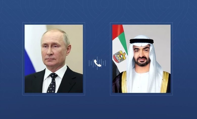 ودعا صاحب السمو رئيس الدولة وفخامة الرئيس الروسي، خلال الاتصال، إلى الوقف الفوري للتصعيد العسكري لتجنب توسيع الصراع في المنطقة وتغليب لغة الحوار والحلول السياسية في معالجة مختلف القضايا.