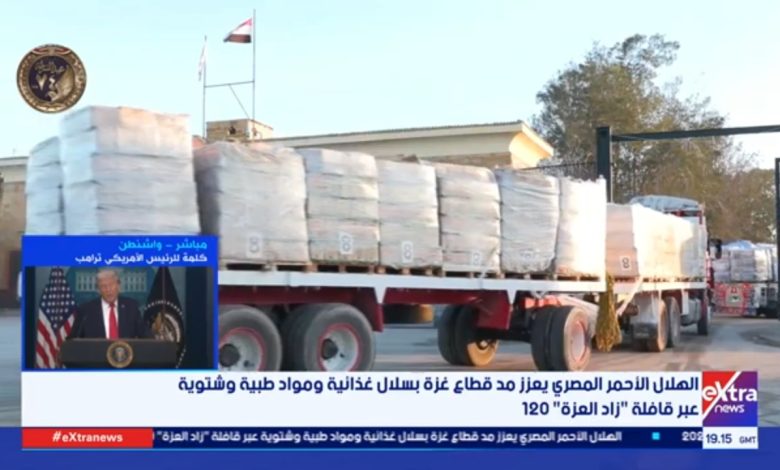 غرفة الأخبار| الهلال الأحمر المصري يعزز مد قطاع غزة بسلال غذائية ومواد طبية وشتوية عبر قافلة “زاد العزة ” 120